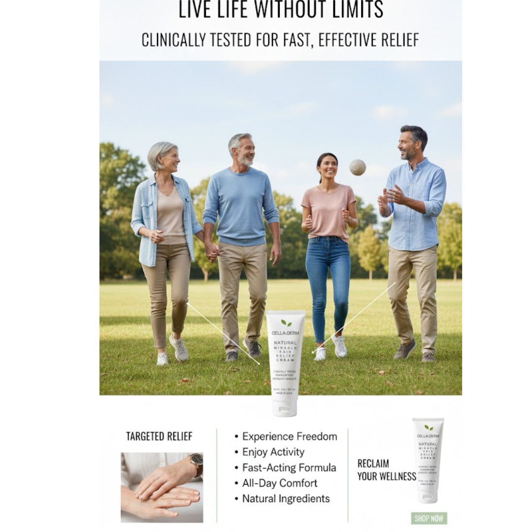 Don't let pain dictate your day. CELLA-DERM gives you the freedom to do more — play with your grandkids, enjoy your morning jog, garden without discomfort, or simply move through your day pain-free. Our physician-formulated cream treats 25+ conditions with targeted, fast-acting relief. Toss it in your bag, keep it in your car, store it in your gym locker. Relief is always within reach.