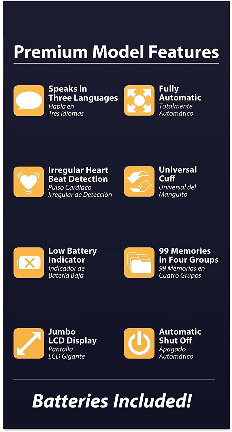 - Standard Cuff Size (fits arms 9″ – 14″ inches/22.86 – 35.56 cm)
